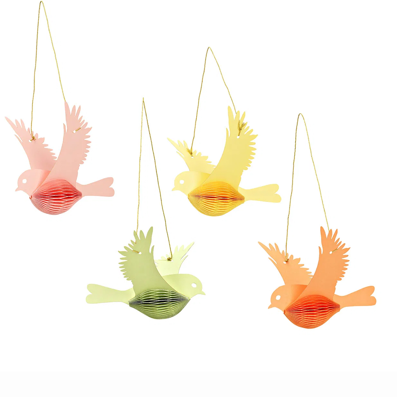 Hanger Honeycomb bird pastel made of paper cardboard, yellow green orange pink 15x15x5cm