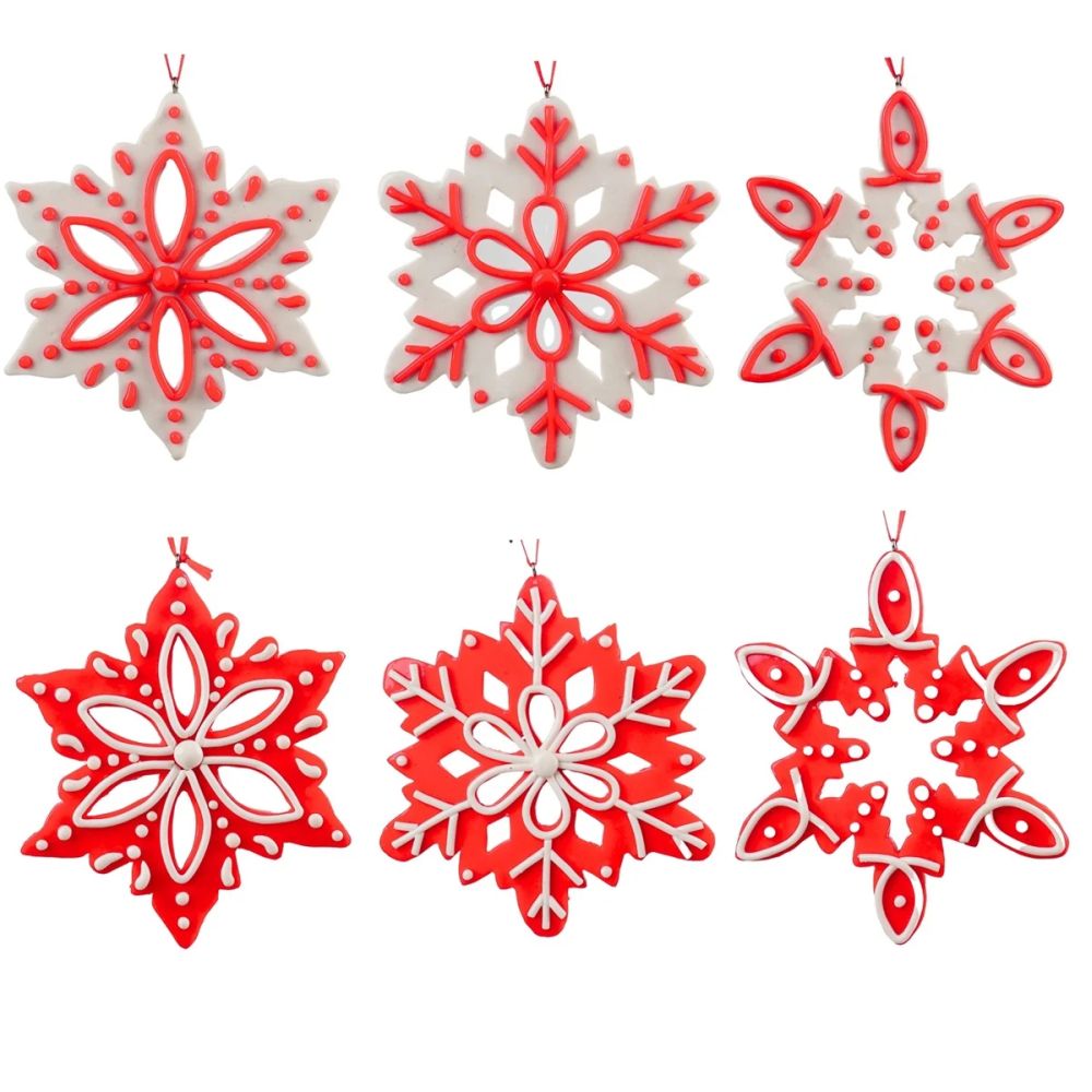 Snowflake tree ornament in 6 designs white with red 13cm
