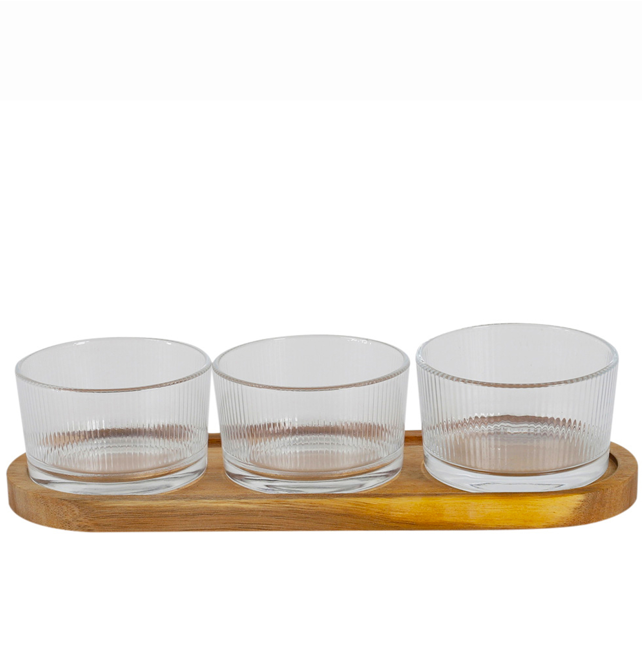 Coctail glass set of 3pcs bowl on acacia base KA0349