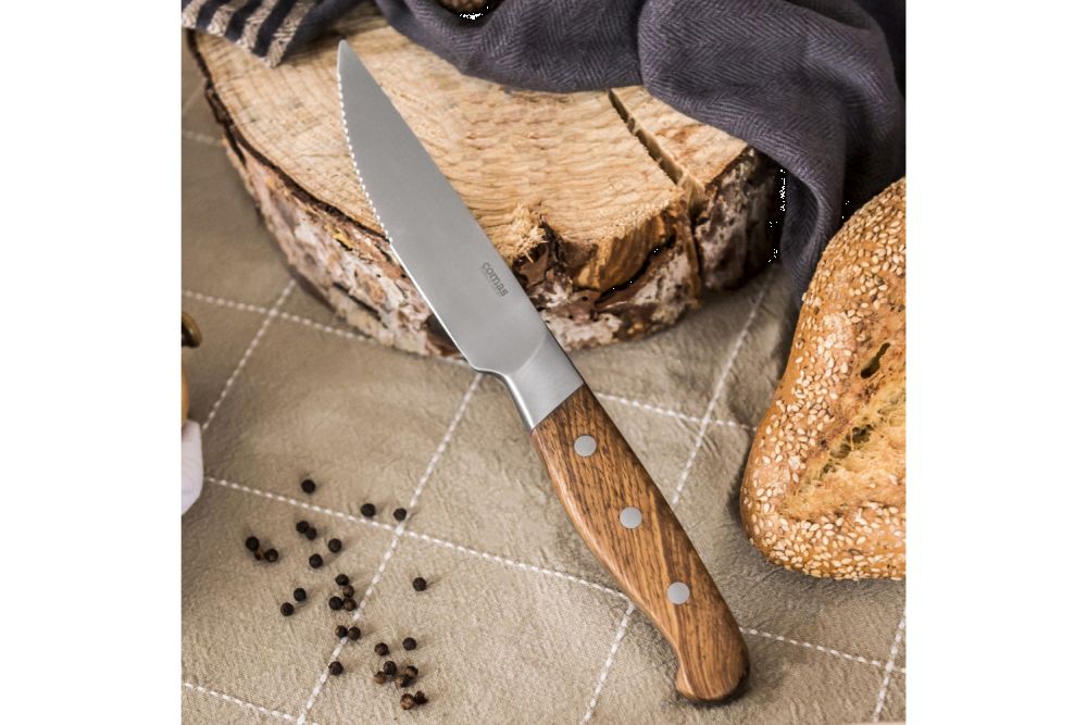 The Aconcagua stainless steel steak knife with wooden handle is an excellent knife for cutting beef steaks and other meats. It is made of stainless steel for strength and durability, while the wooden handle offers a natural and effective grip during use. The Aconcagua steak knife provides a sharp and efficient blade for easy and precise cutting of your meats. It is ideal for business and home use and adds a touch of natural elegance to your table, creating a pleasant dining experience.