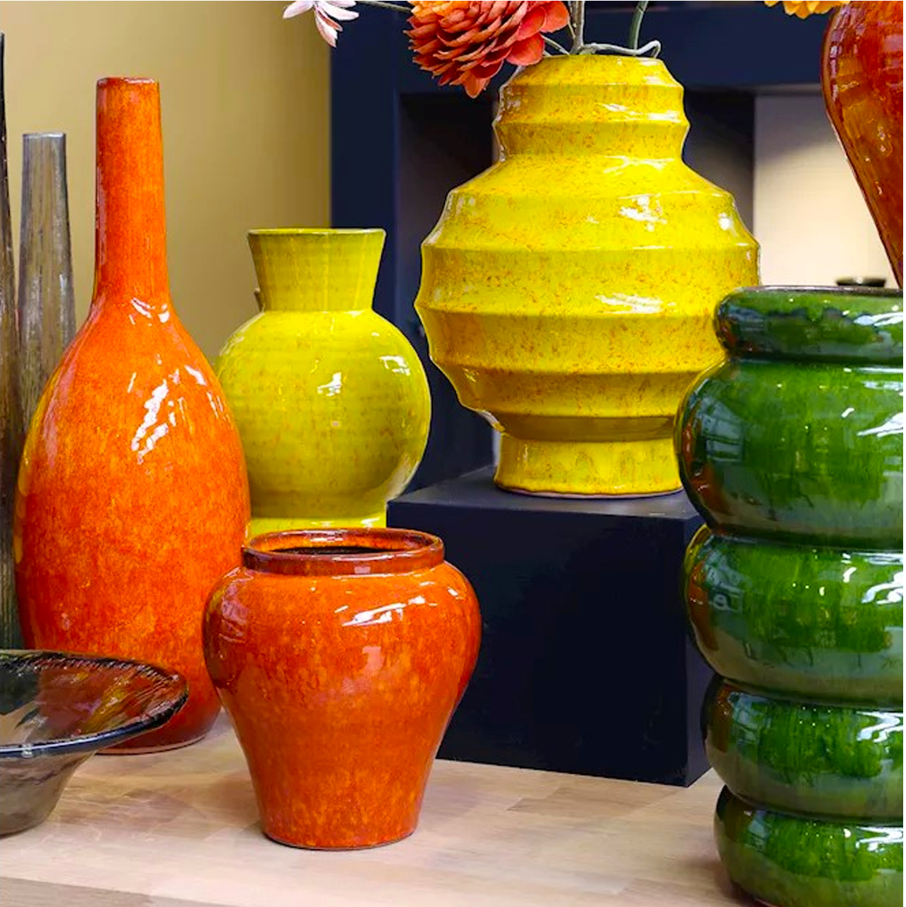 Modern ceramic vase with a glossy finish in orange. Ideal for adding intensity and style to the decoration of the space.