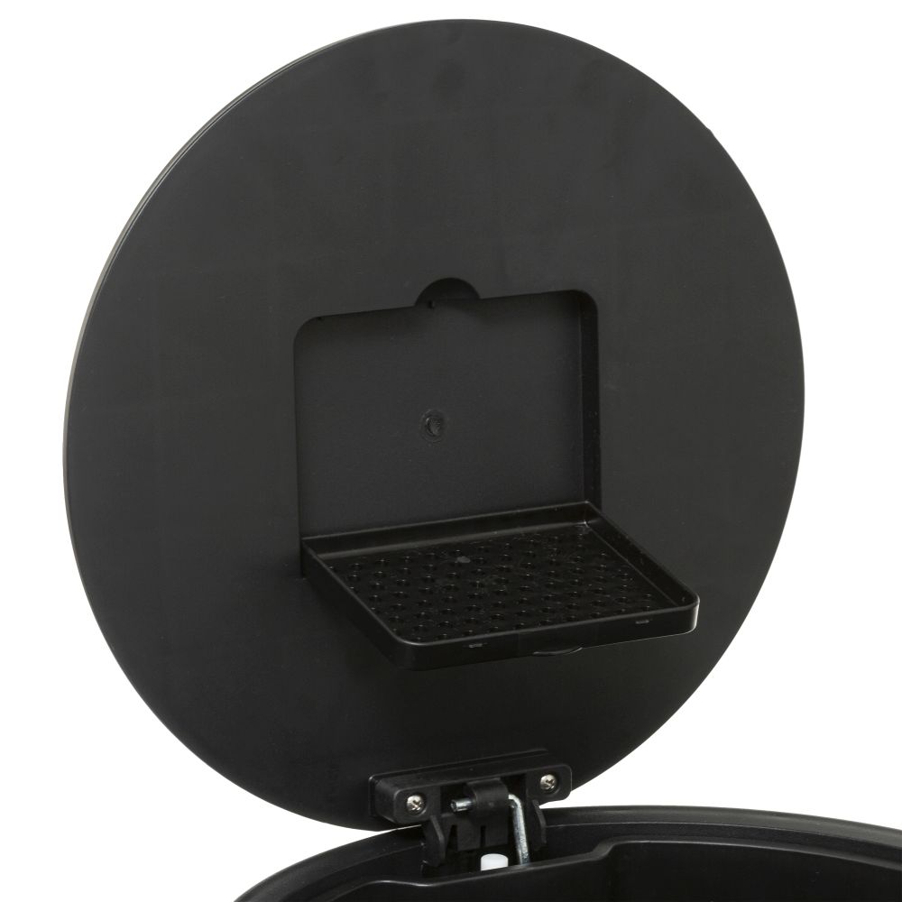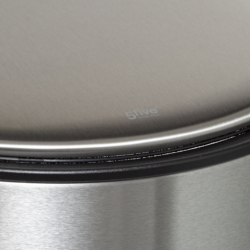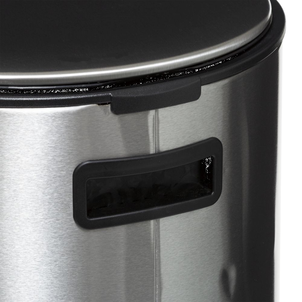 Round metal waste bin, 30L capacity. Equipped with the soft close function for soft and silent closing of the lid. The included active carbon filter neutralizes bad odors. Easy cleaning thanks to the removable bucket and the suspension system for the waste bag. Super flat cover, wont damage your walls and stays open at 90°. Compact reinforced metal pedal for greater comfort of use.