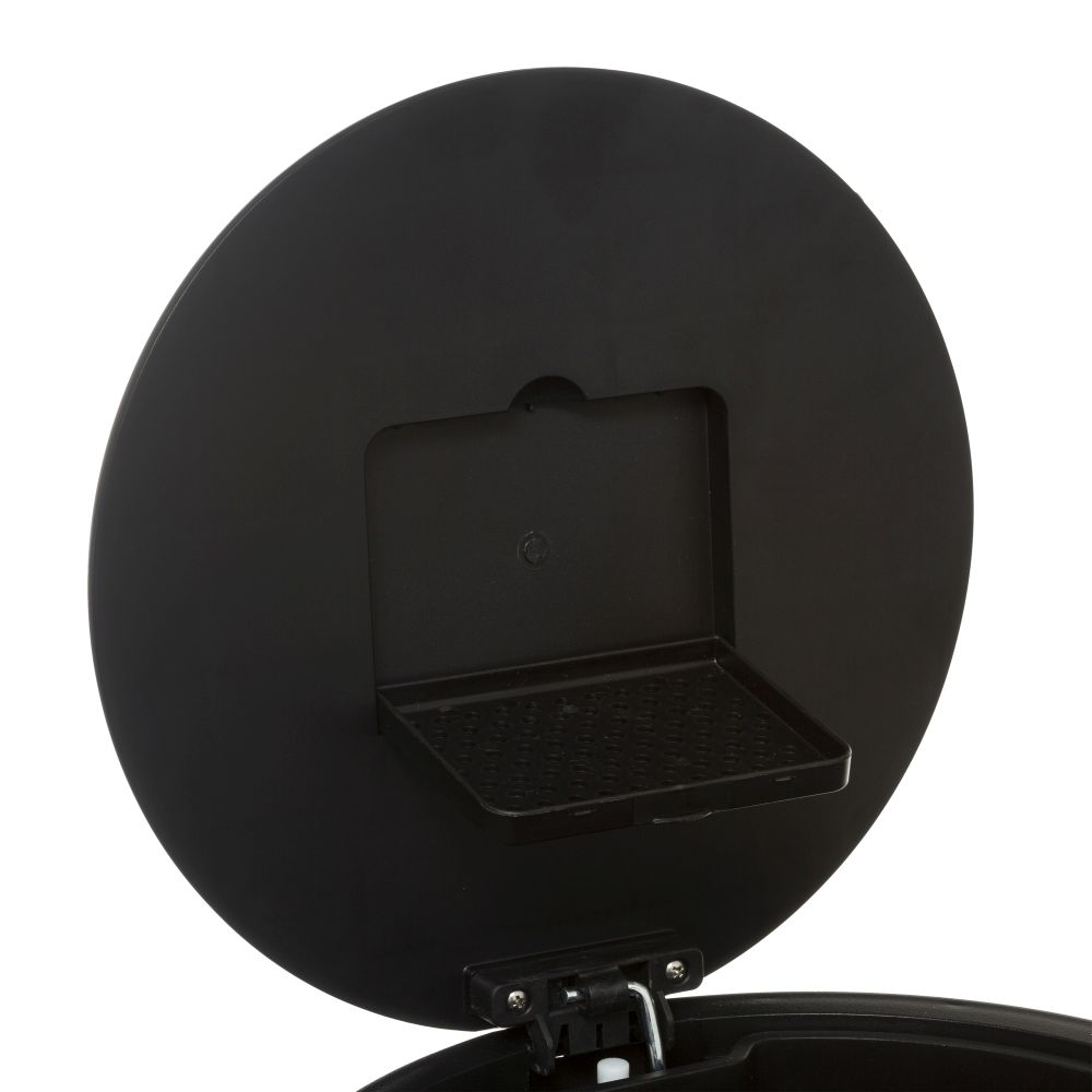Round metal waste bin, 30L capacity. Equipped with the soft close function for soft and silent closing of the lid. The included active carbon filter neutralizes bad odors. Easy cleaning thanks to the removable bucket and the suspension system for the waste bag. Super flat cover, wont damage your walls and stays open at 90°. Compact reinforced metal pedal for greater comfort of use.