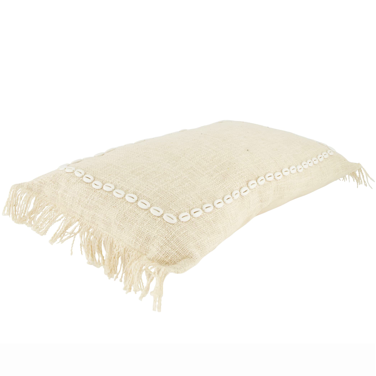 Decorative cushion made of recycled cotton in ecru color, with shell details. Ideal for natural and summer decoration.
