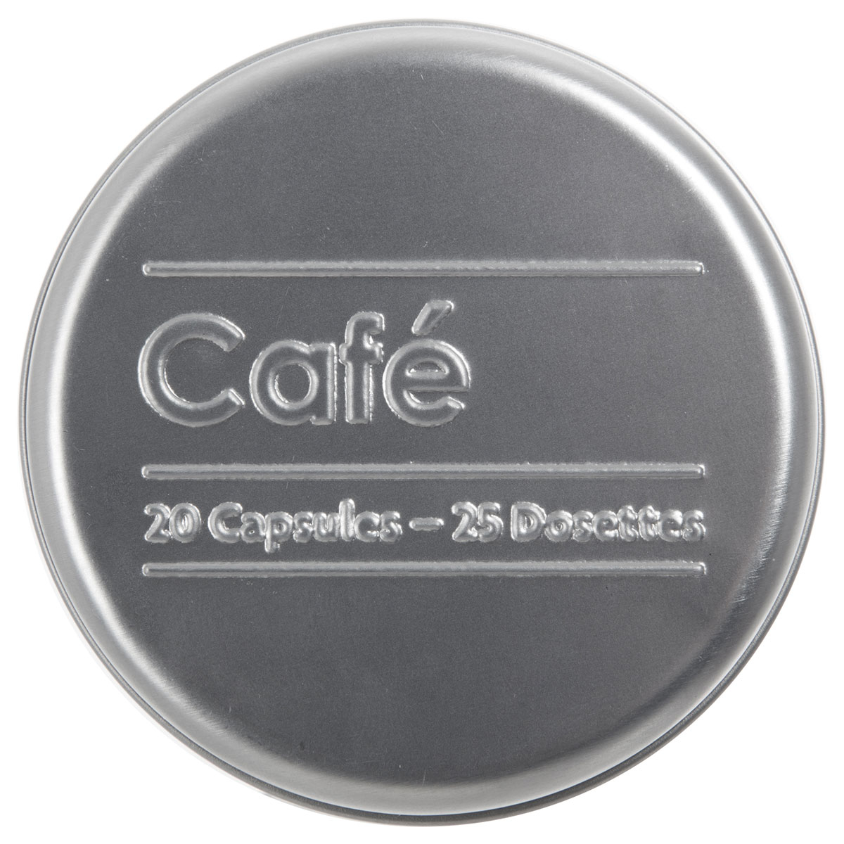 The metal storage container for coffee or capsules, with a diameter of 8 cm and a height of 18 cm, offers a practical and stylish solution for organizing your coffee. Durable and with a modern design, it keeps aromas fresh and provides excellent storage.