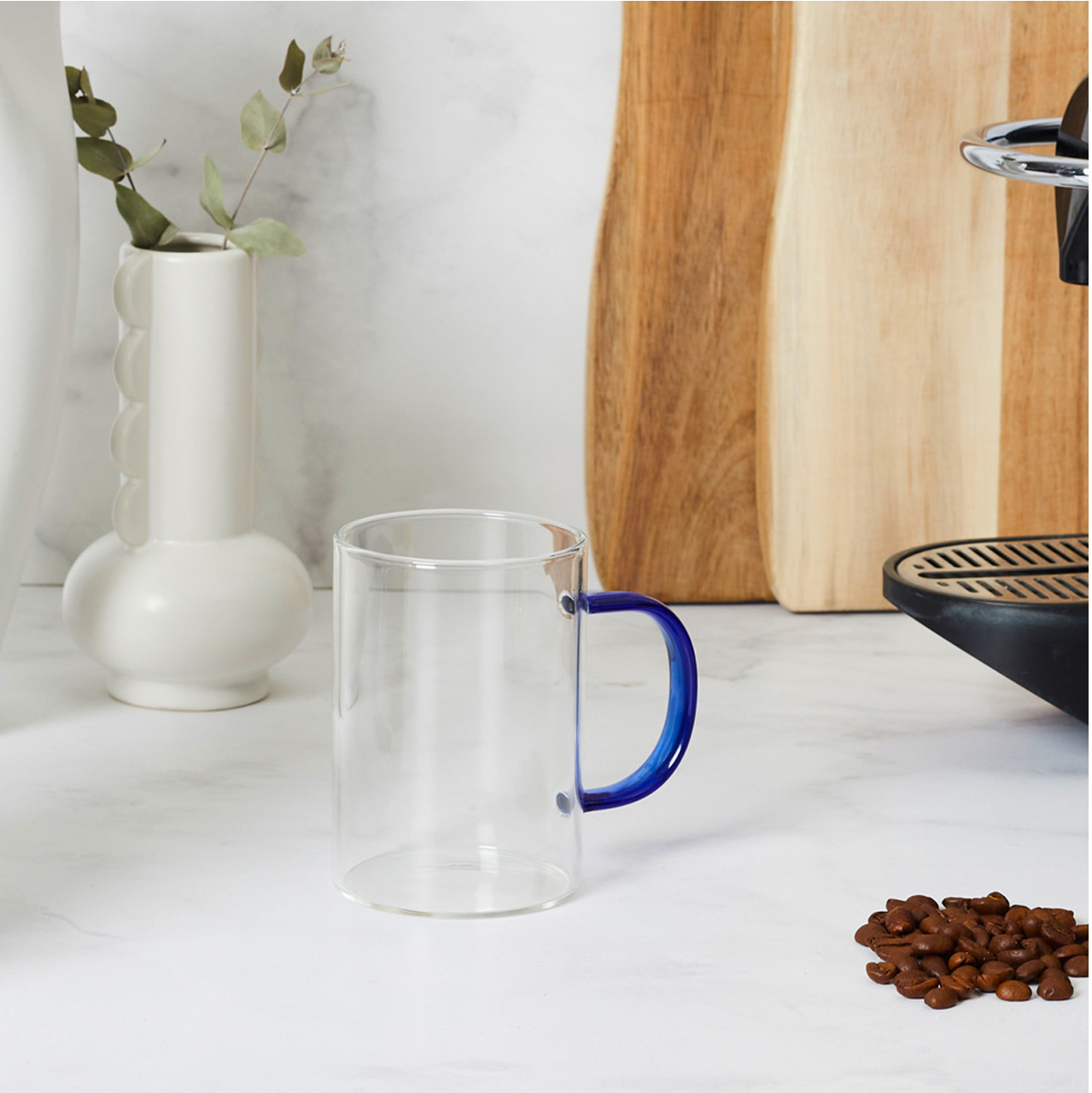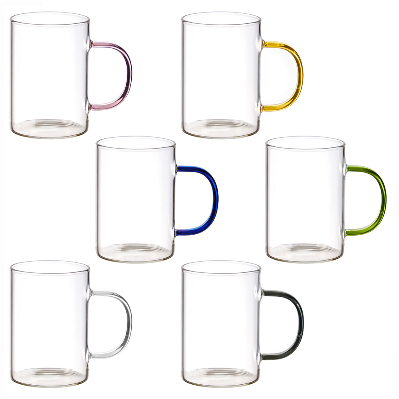 Glass cup with colored handle 30cl in 6 colors KA0248