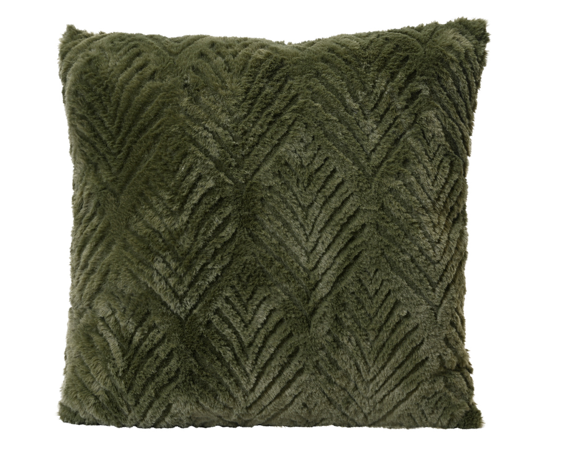 Dark green fur cushion with embossed design 45x45cm