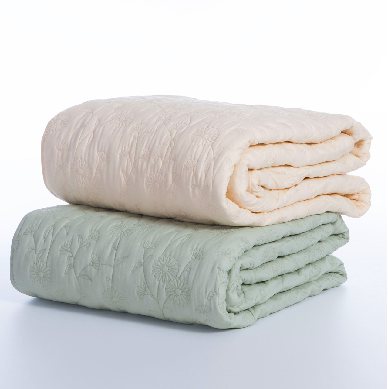 Queen size bedspread dimension 230x240cm, with fabric of 100% cotton and polyester filling.