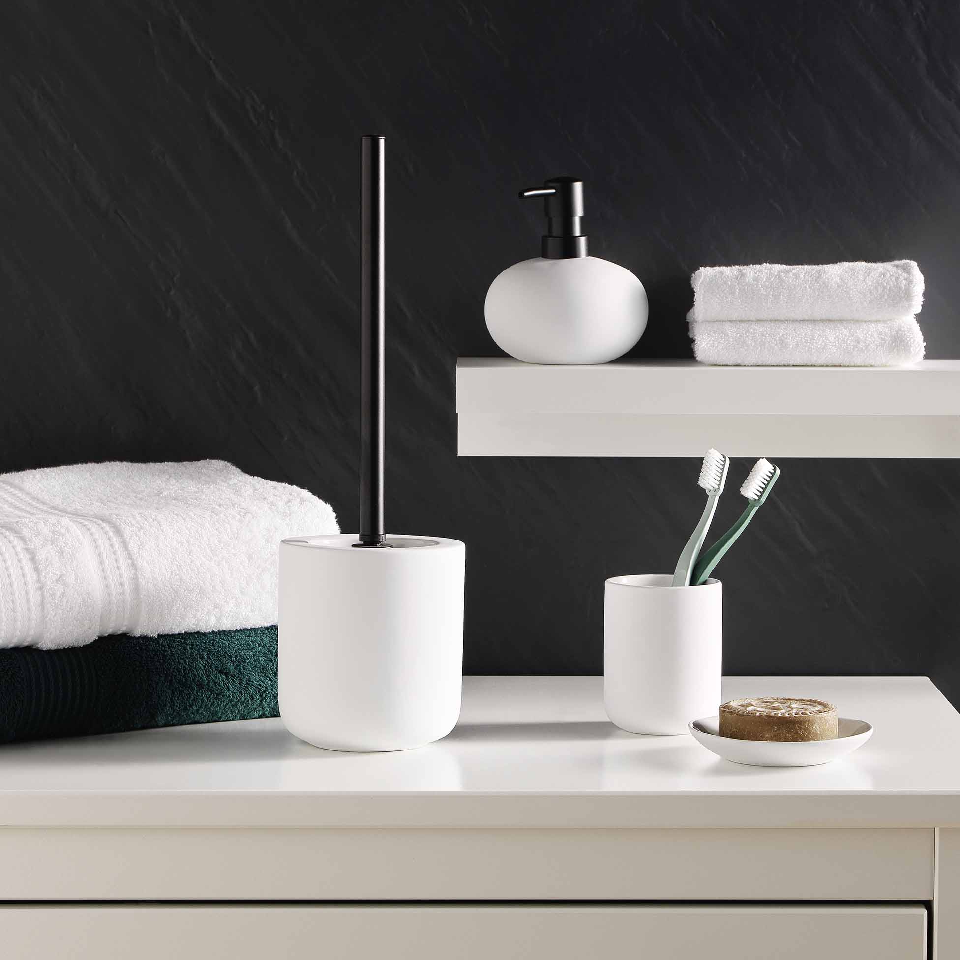 White stoneware toothbrush holder, measuring 7×9.5 cm. Featuring a modern and elegant design, it fits perfectly in any bathroom, offering durability and practicality. Ideal for everyday use.