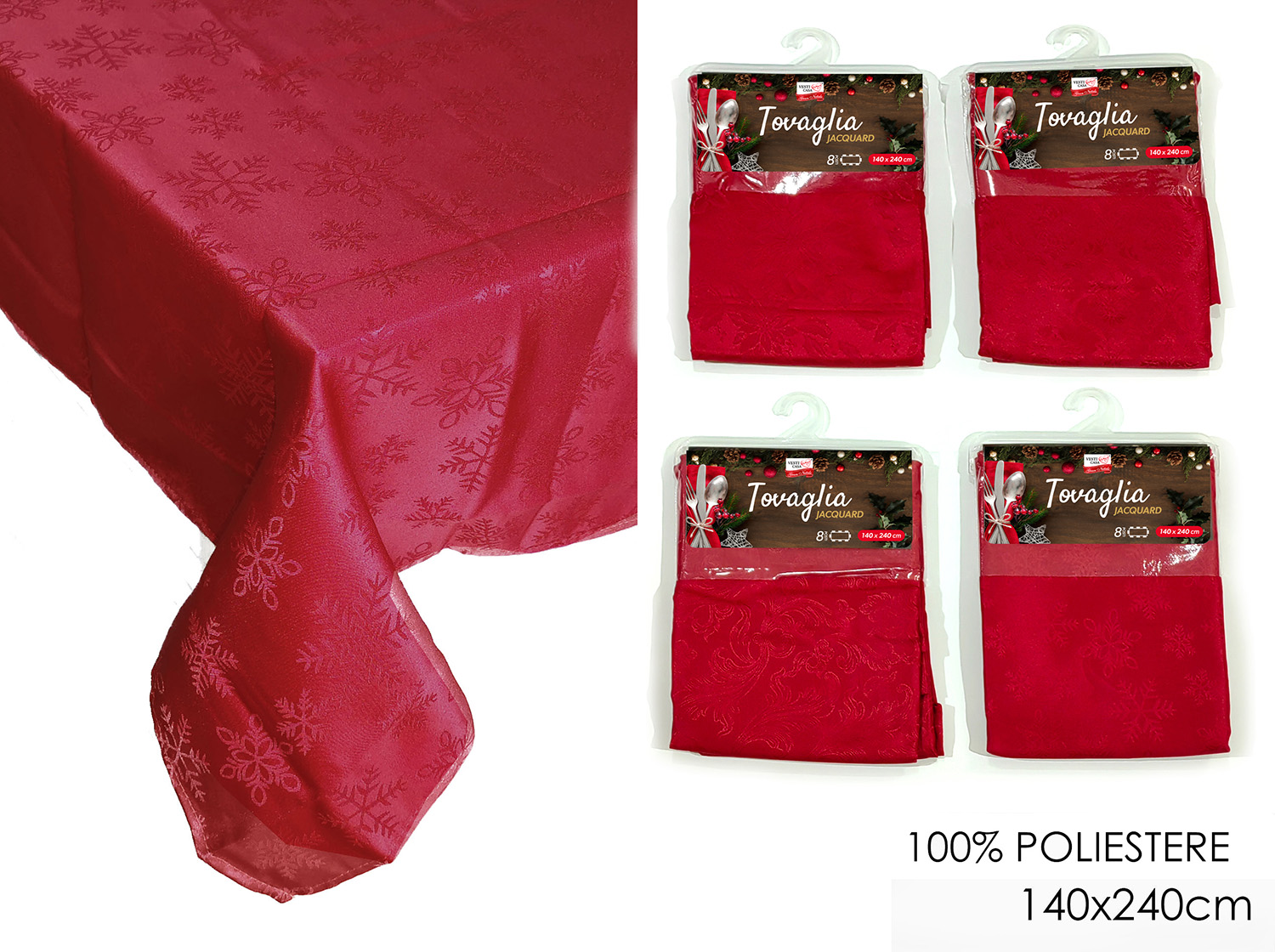 Red Christmas tablecloth in 4 embossed designs 140x240cm