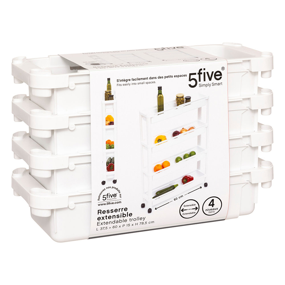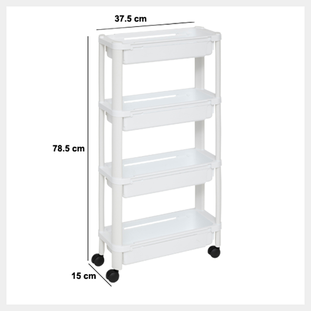 Expandable trolley PP white shelf 37.5x15x78.5cm