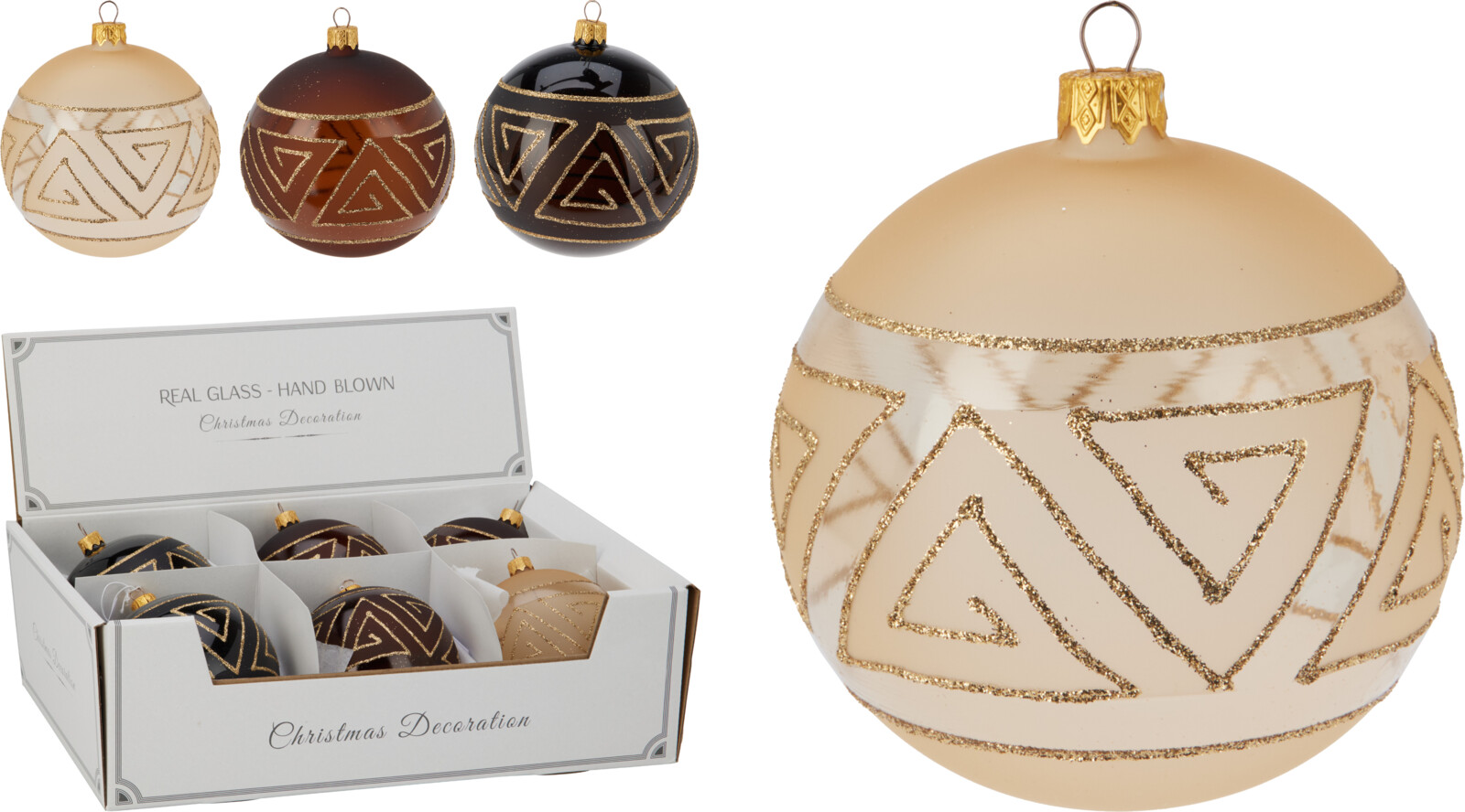 Γυαλινη Mπαλα Με Γεωμετρικα Σχεδια Σε 3 Χρωματα 10Εκ