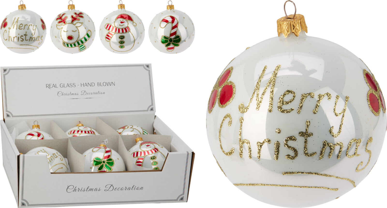 Γυαλινη Mπαλα Λευκη Με Χριστ/Κη Φιγουρα 10Εκ