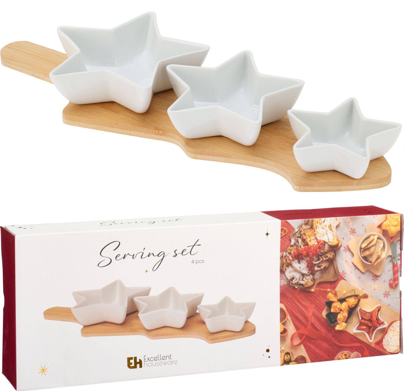 Δισκος Σερβιρισματος Δεντρο Σετ 4Τμχ Με Μπωλακια Αστερια
