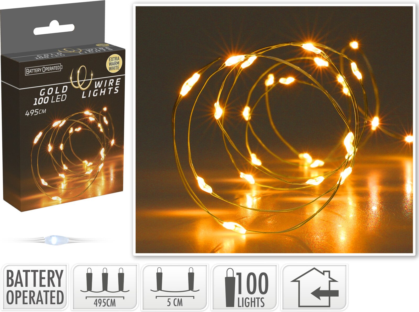 Φωτάκια μπαταρίας 100 LED σύρμα θερμό φως