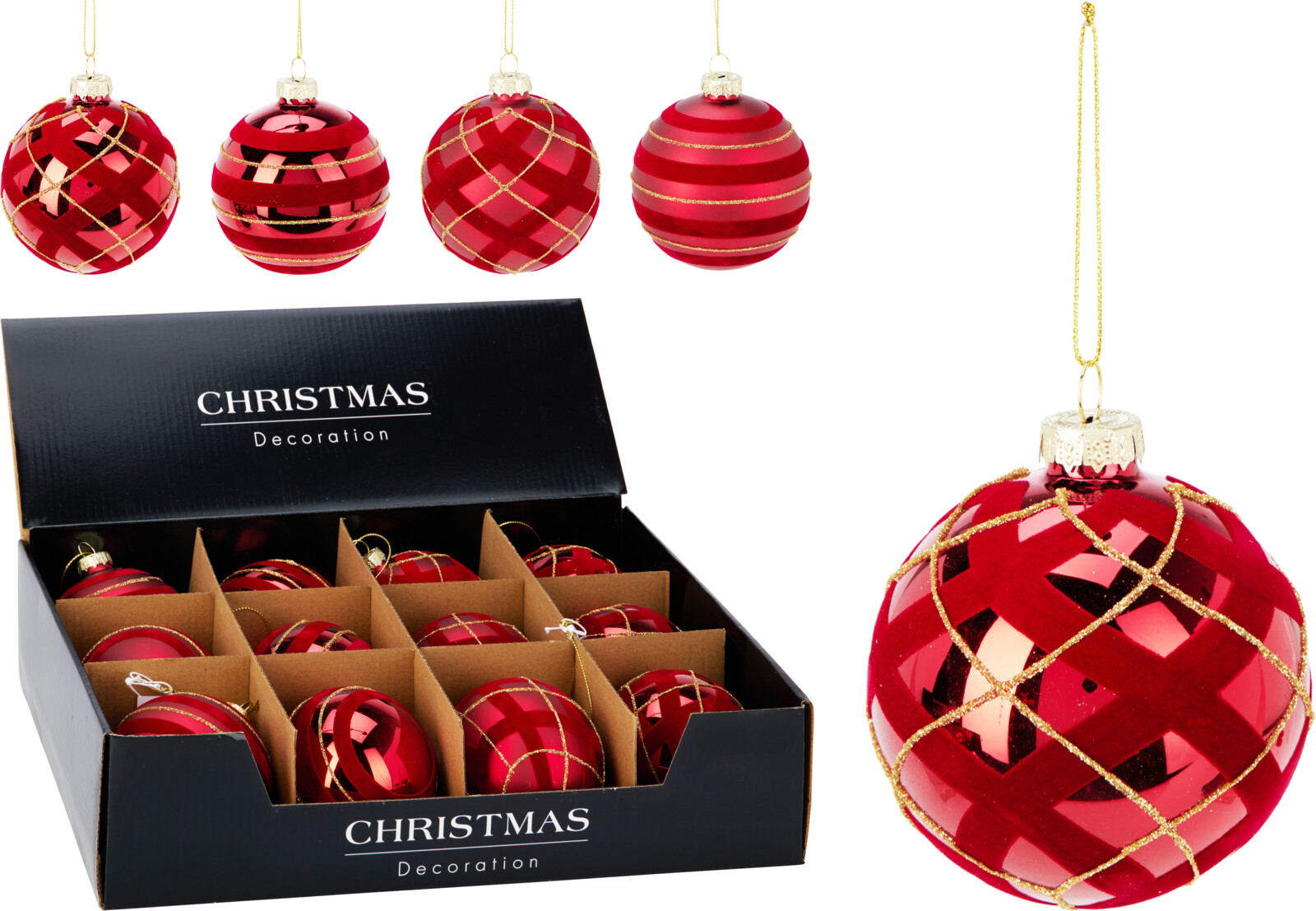 Στολιδι Μπαλα Γυαλινη Κοκκινη Σε 4 Σχεδια 8Εκ