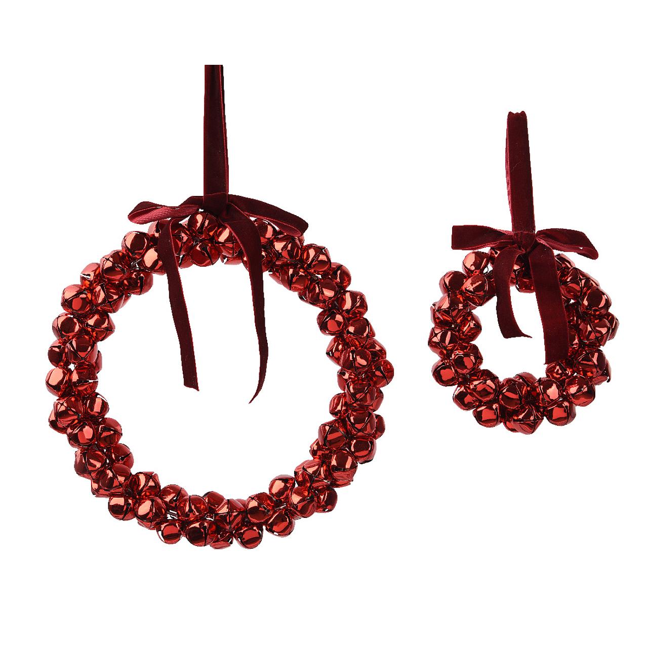 Χριστουγεννιάτικο διακοσμητικό στεφάνι με κόκκινα κουδουνάκια D25x3cm