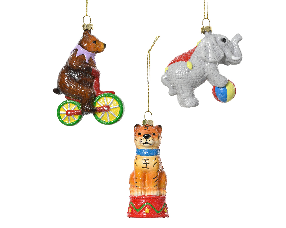 Χριστουγεννιάτικο στολίδι γυάλινο circus σε 2 σχέδια 9x4x9cm