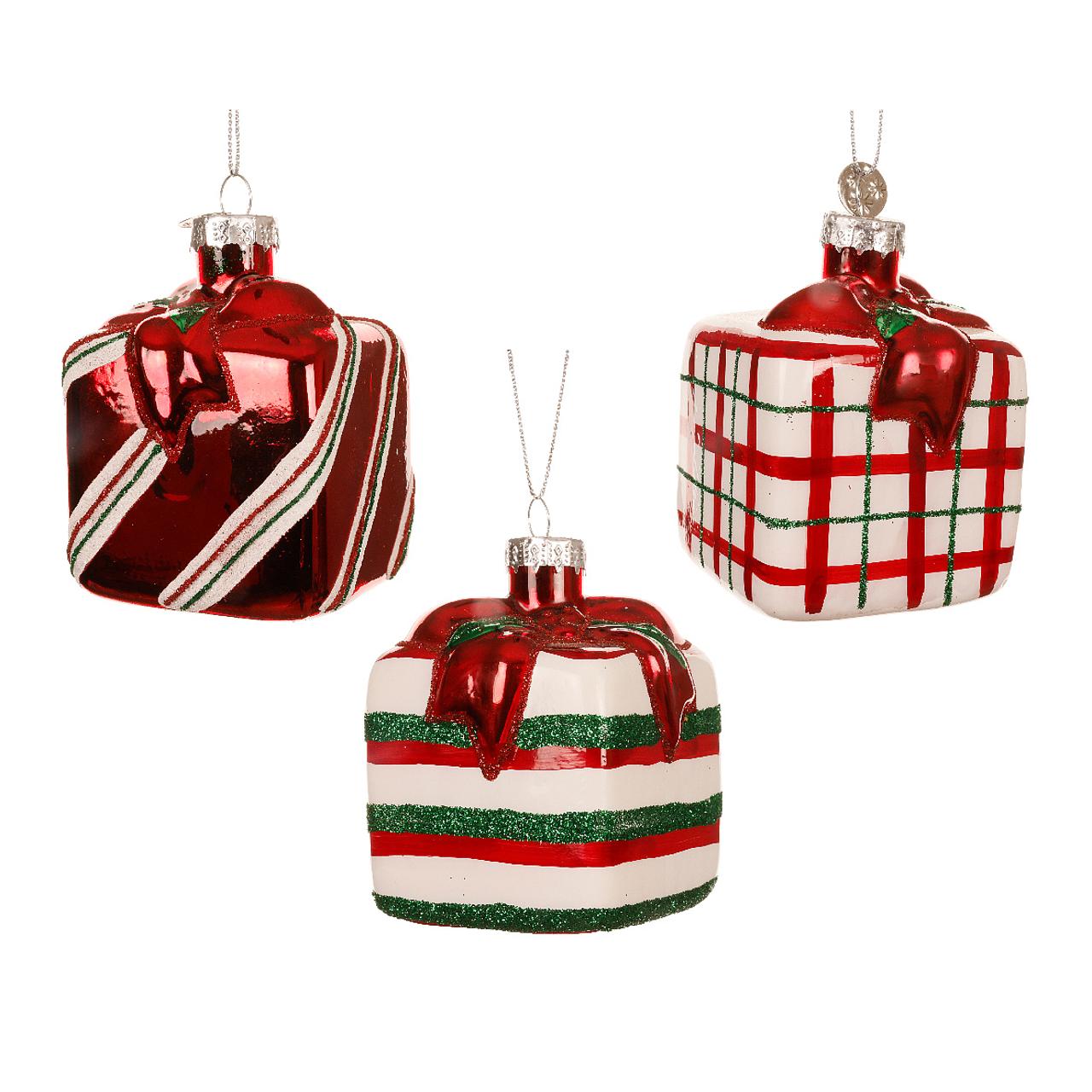 Χριστουγεννιάτικο στολίδι γυάλινο δώρο 6x6x8cm σε 3 σχέδια