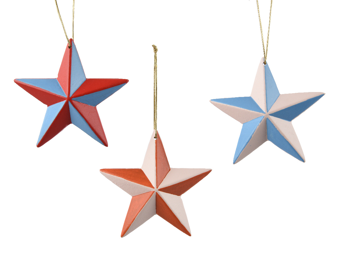 Χριστουγεννιάτικο στολίδι circus αστέρι σε 3 χρώματα 3.5x11x11cm