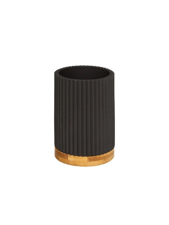 Modern ποτηροθήκη επιτραπέζια πλαστική μαύρη με βάση bamboo