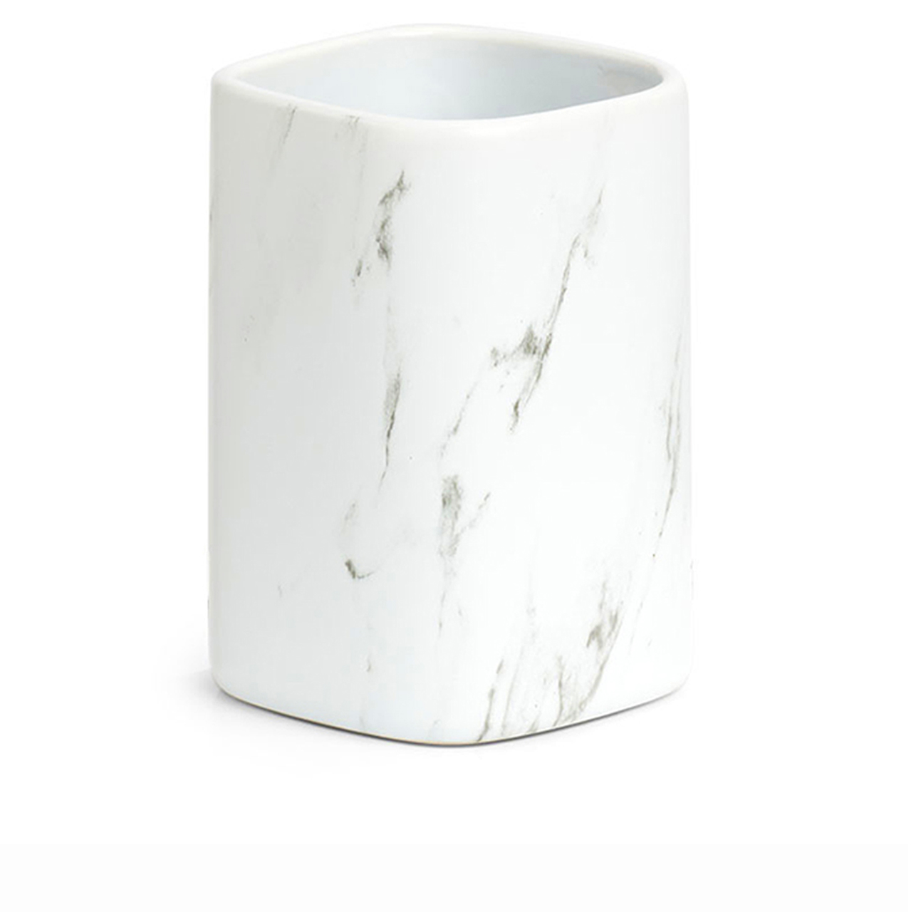 Ποτηράκι για οδοντόβουρτσες Marble κεραμικό 7.5×7.5×10.9cm λευκό 18896