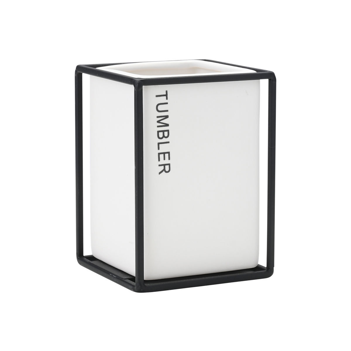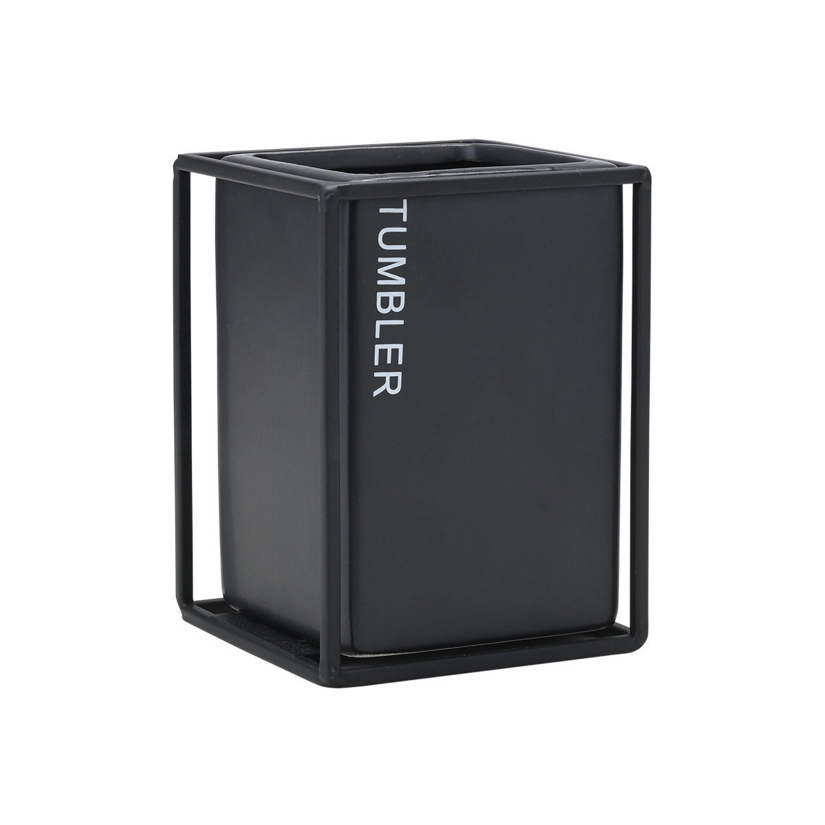 Ποτηρακι Μπανιου Cage Κεραμικο Μαυρο με Μεταλλικο Πλαισιο