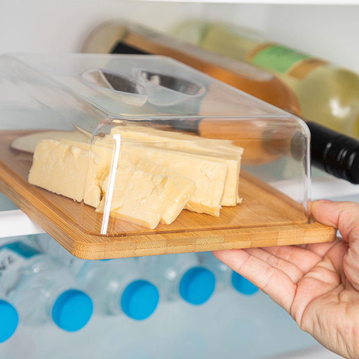 Βάση τυριών bamboo με πλαστικό καπάκι 24x18x8cm