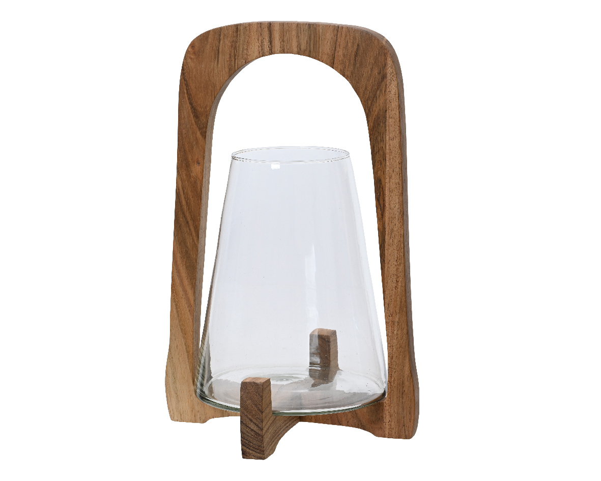 Φανάρι από ξύλο μάνγκο και γυαλί σε φυσικό χρώμα φ23x36cm