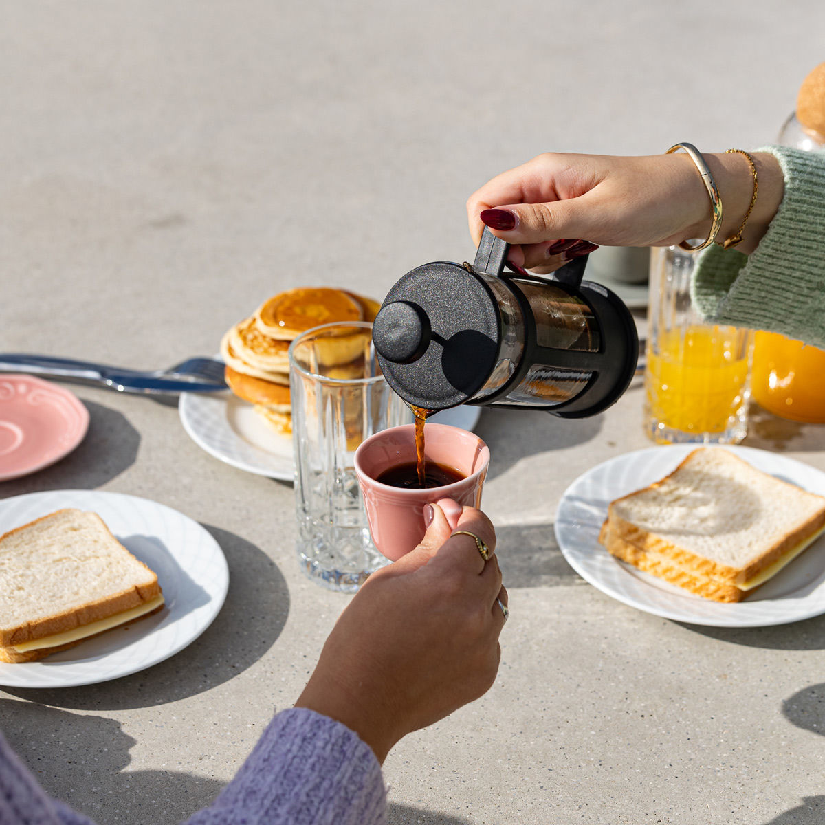 Καφετιέρα χειρός. Είναι κατασκευασμένη από γυαλί Borosilicate, ανθεκτικό στις αλλαγές θερμοκρασίας, με λαβή σιλικόνης.