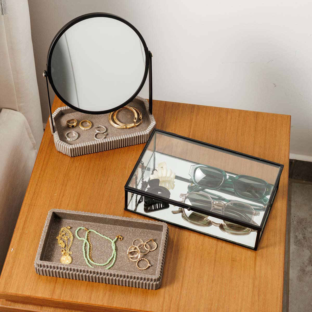 Κουτι Οργανωσης Γυαλινο με Καθρεπτη και Μαυρο Μεταλλικο Πλαισιο 24x14x6cm