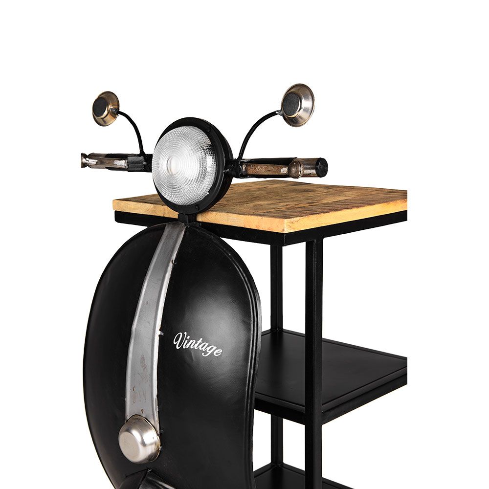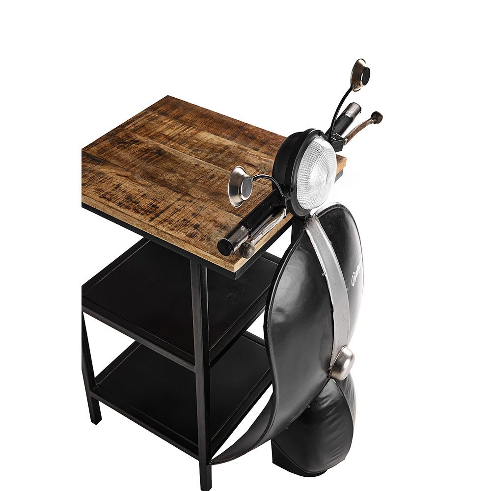Mini vespa τραπεζάκι βοηθητικό με ράφια μαύρο ασημί φυσικό 61x45x88cm