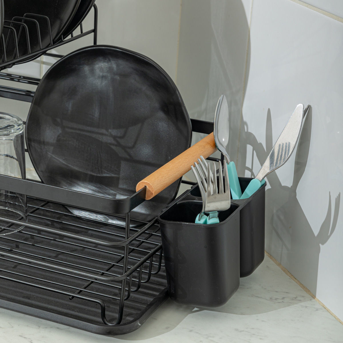 Πιατοθηκη Bamboo Essentials Διωροφη Μεταλλικη Μαυρη με Bamboo Λαβες