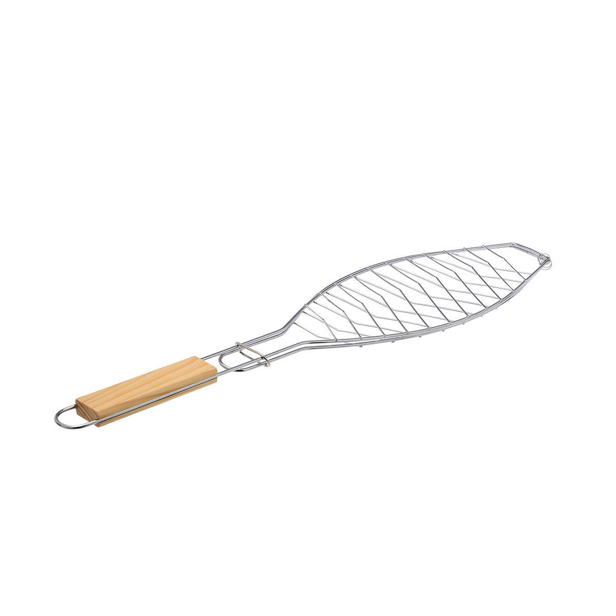 Σχαρα Ψησιματος Ψαριου Barbeque Μεταλλικη 33x14cm με Ξυλινη Λαβη