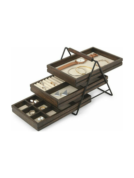[1.htmlUο Organizer Κοσμημάτων Και Αξεσουάρ Terrace διαθέτει τρεις στοιβαγμένους δίσκους, ο καθένας με διαχωριστικά βελτιστοποιημένα για την οργάνωση των κοσμημάτων και την προστασία τους. Κατασκευασμένο από υψηλής ποιότητας ξύλο παυλώνιας και μεταλλικό σκελετό το Terrace είναι ένα αξεσουάρ που δεν θα έχει μόνο χρηστικό αλλά και διακοσμητικό ρόλο στο χώρο σας. Οι δίσκοι κοσμημάτων γλιστρούν για εύκολη πρόσβαση στα αξεσουάρ. Κάθε δίσκος έχει ένα διαφορετικό στυλ διαχωρισμού, φτιαγμένο για διαφορετικά είδη κοσμημάτων και βοηθά να κρατάτε χωριστά δαχτυλίδια, βραχιόλια, σκουλαρίκια και κολιέ για τη βελτιστοποίηση της οργάνωσης. Η επένδυση από λινό στα διαμερίσματα προστατεύει μικρά και ευαίσθητα αντικείμενα.