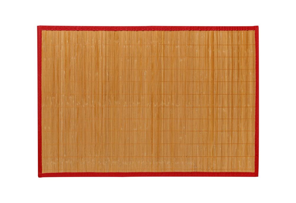 Χαλί bamboo αντιολισθητικό σε φυσικό χρώμα με κόκκινη μπορντούρα 60x90cm